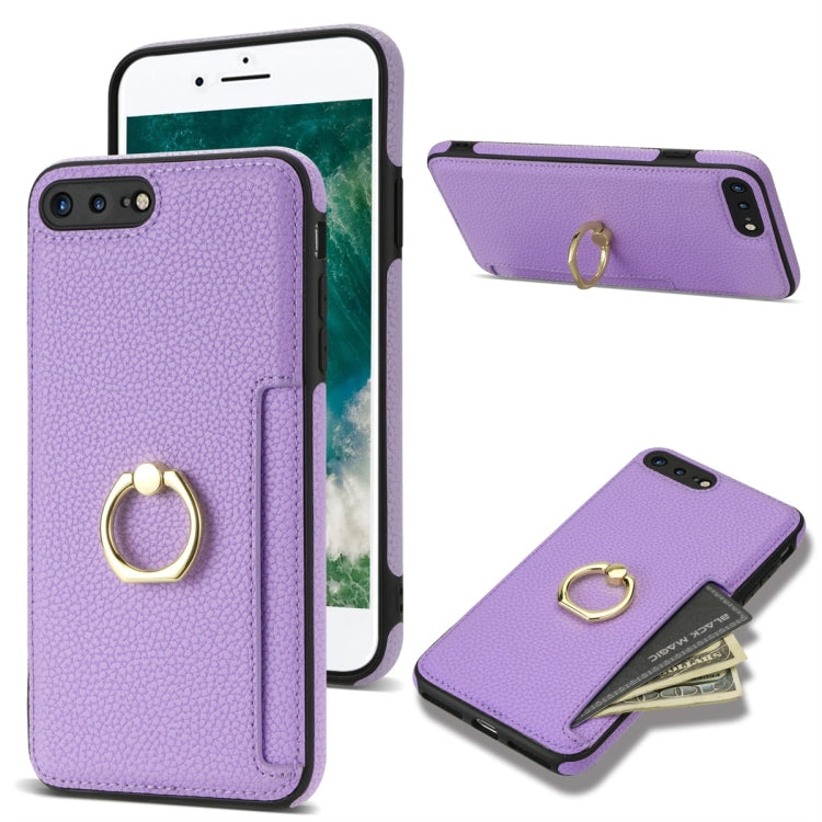 Estuche para teléfono iPhone 8 Plus/7 Plus con parte Trasera de cuero Litchi y tarjeta de anillo (Púrpura)