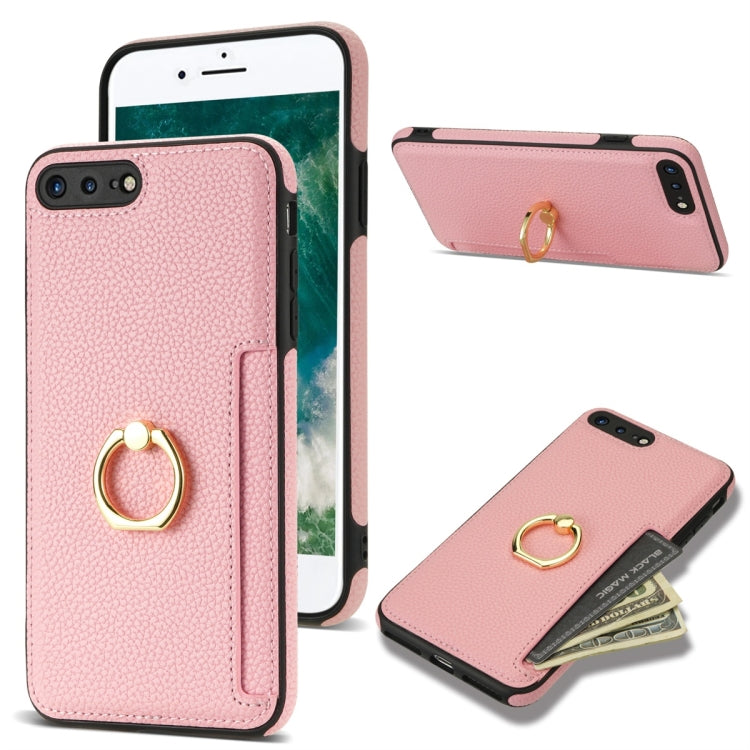 Estuche para Teléfono iPhone 8 Plus/7 Plus Parte Trasera de Cuero Litchi con Tarjeta de Anillo (Rosa)