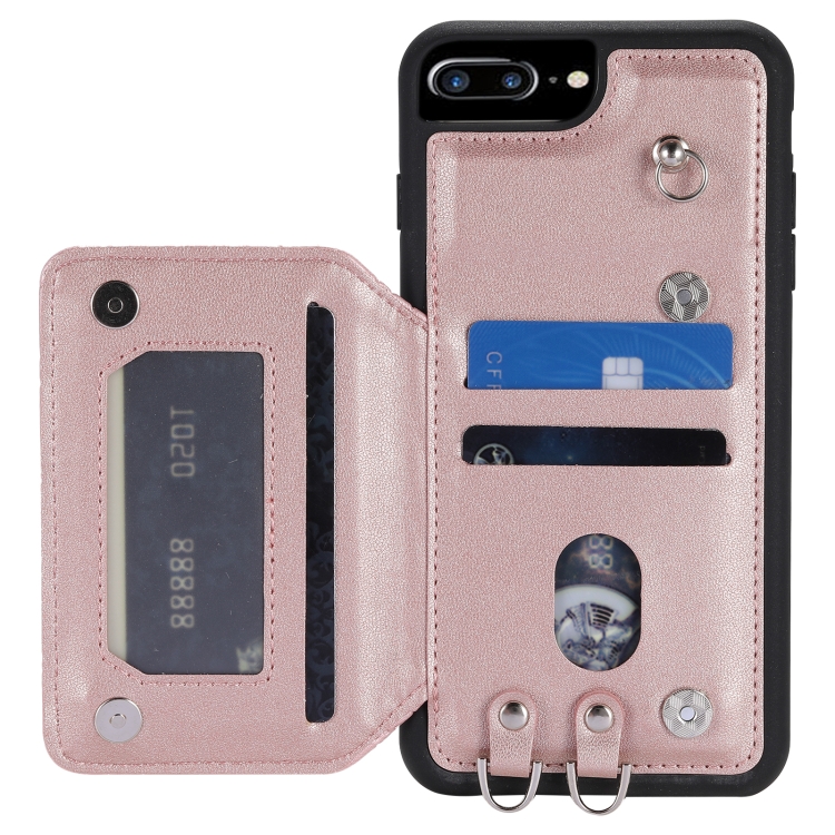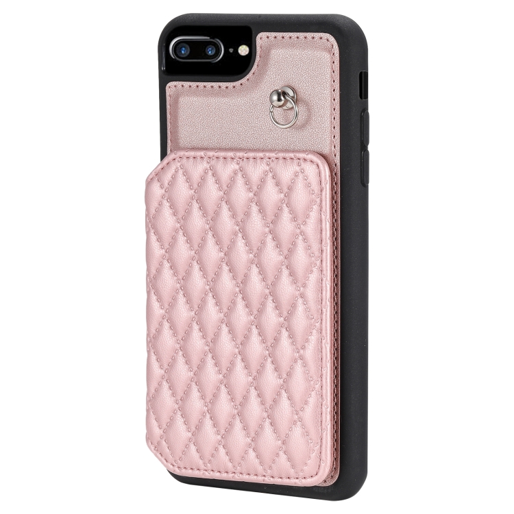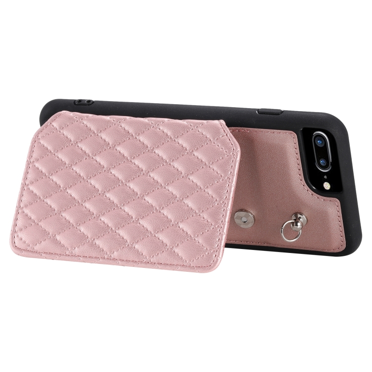 Funda para Teléfono iPhone 8 Plus/7 Plus con Bolsa para Tarjetas Textura de Rejilla y Cordón (Oro Rosa)