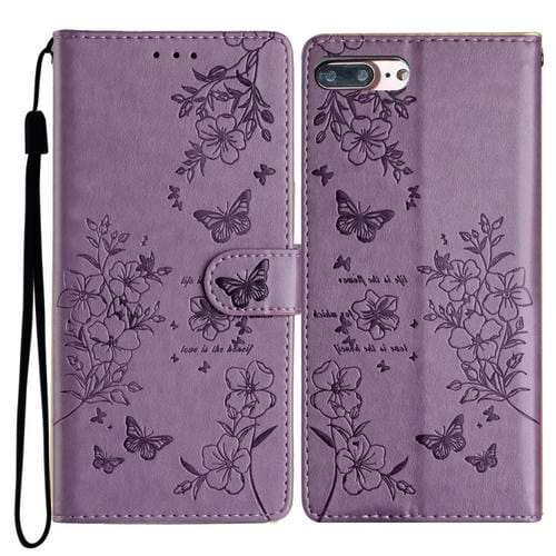 Funda para Teléfono iPhone 8 Plus 7 Plus Cuero Relieve Flor Amor y Mariposa (Púrpura)