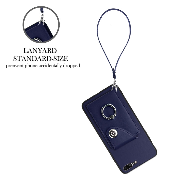 Funda para Teléfono iPhone 8 Plus/7 Plus PU con Soporte para Anillo y Bolsa para Tarjeta con Cordón (Azul)