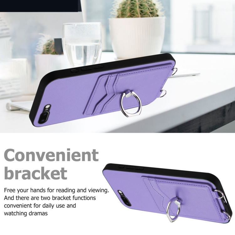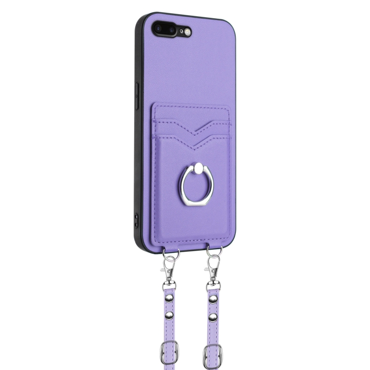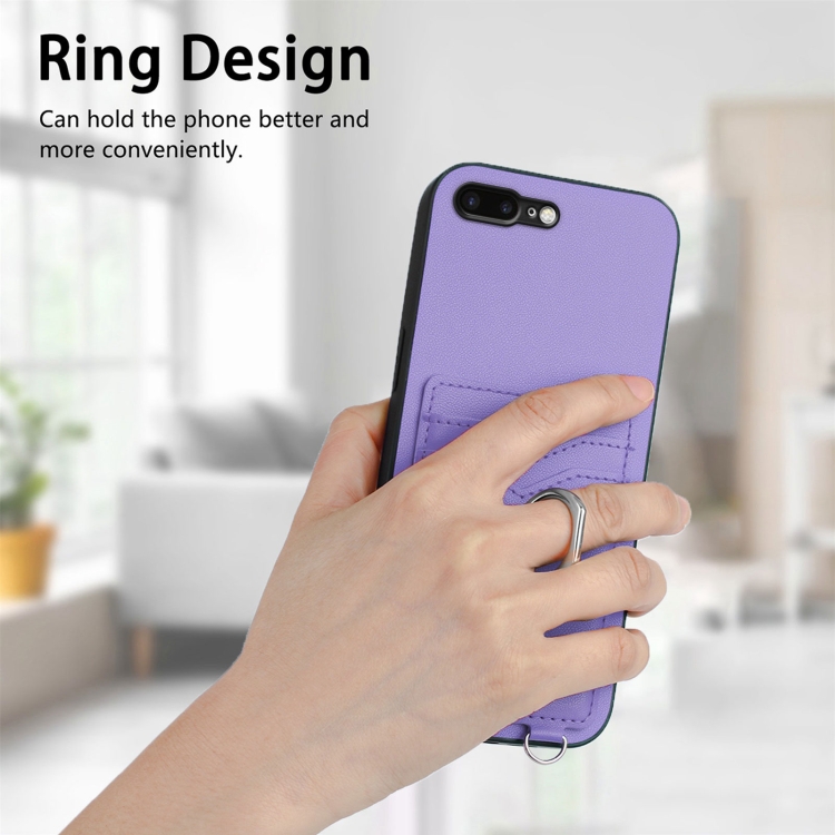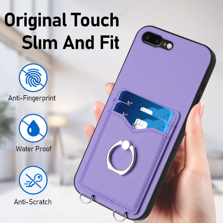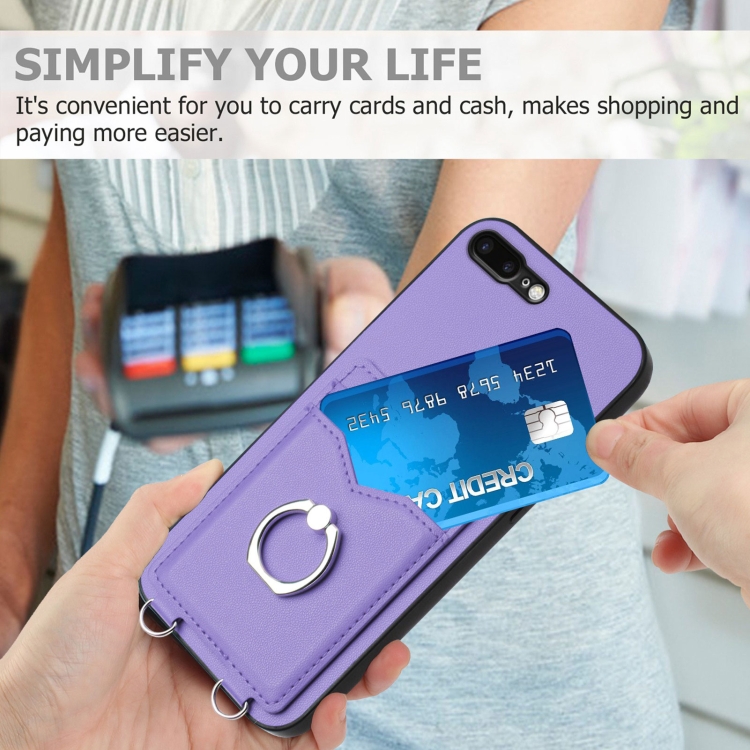 Funda para Teléfono iPhone 8 Plus 7 Plus R20 Soporte Tarjeta Anillo Cruzado con Cuerda (Púrpura)