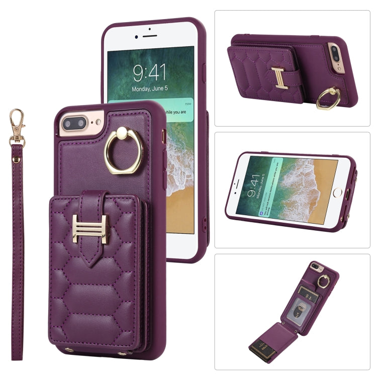 Funda para iPhone 8 Plus / 7 Plus con Porta Tarjetas Vertical y Anillo con Doble Cordón (Morado Oscuro)