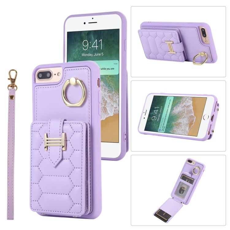 Funda para iPhone 8 Plus 7 Plus Vertical Card Bag Ring Holder con Doble Cordón (Púrpura)