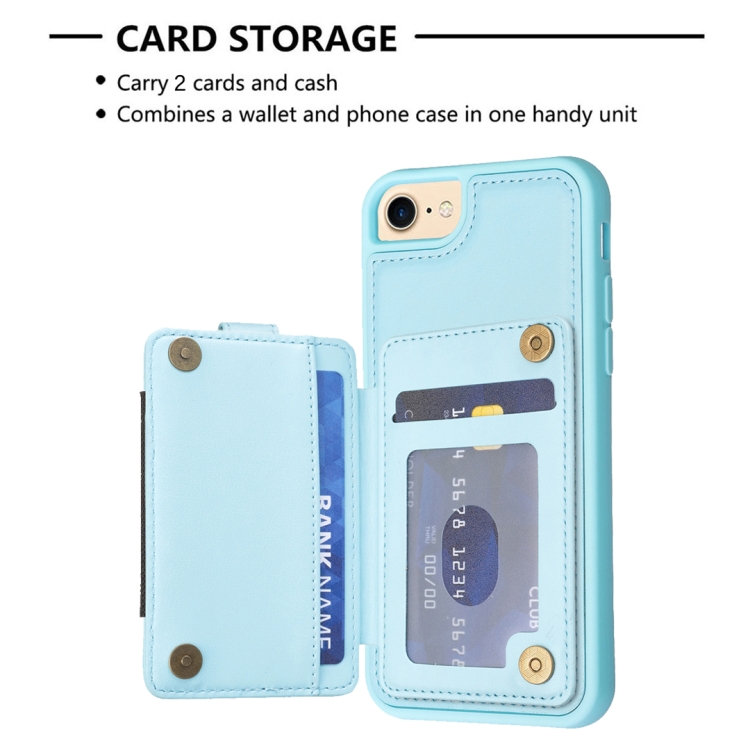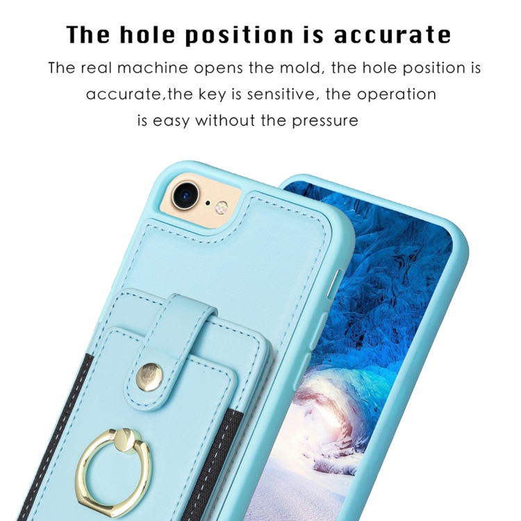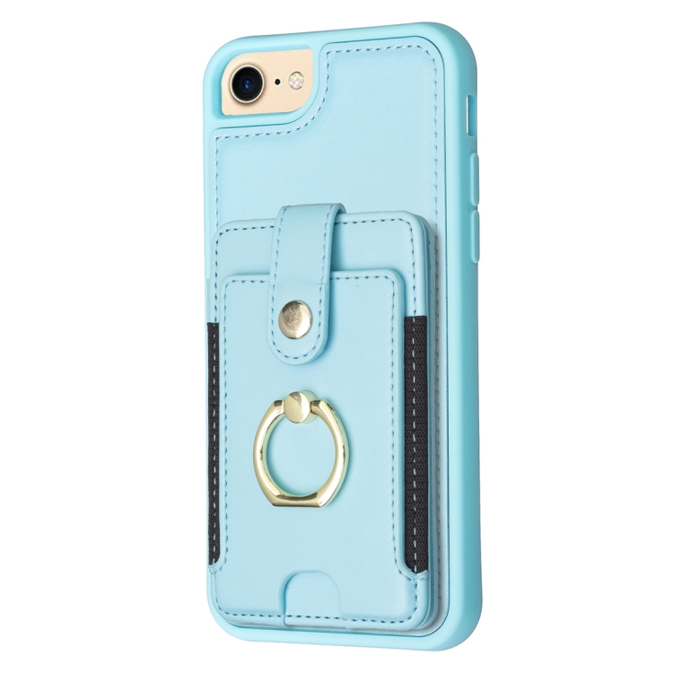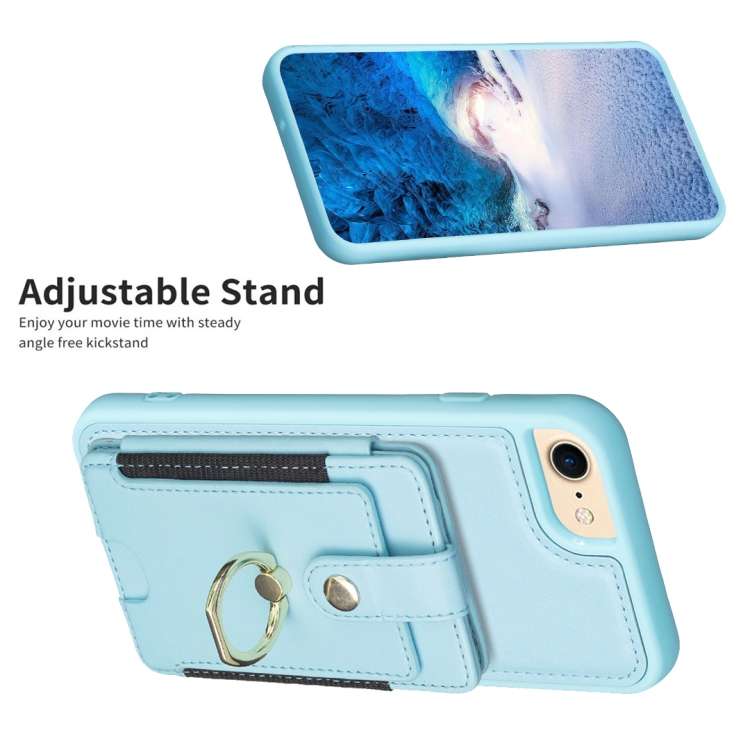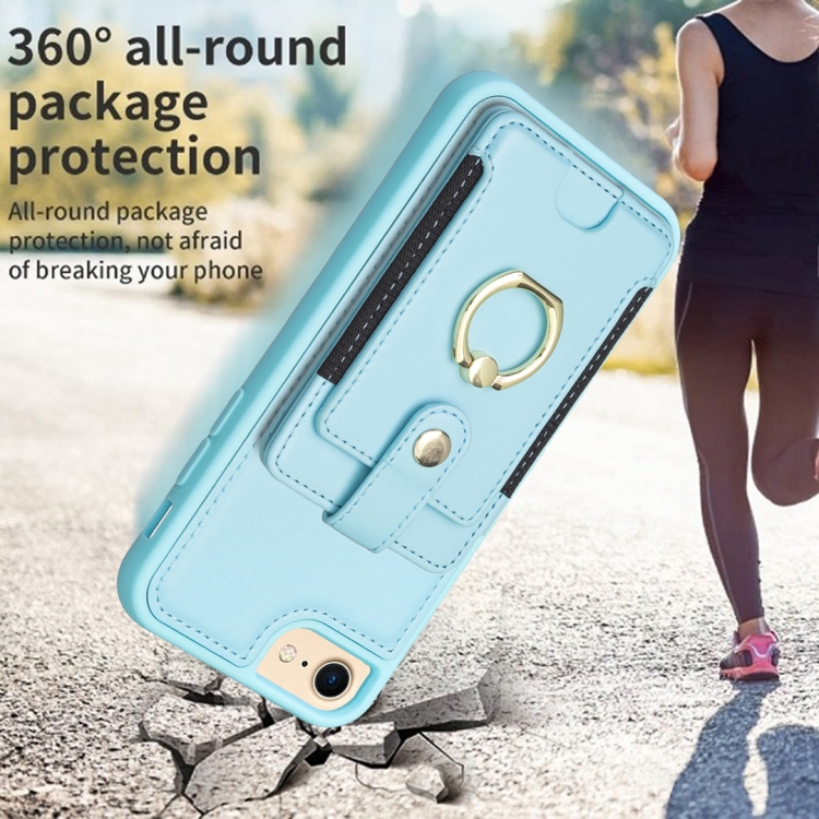 Anillo de Metal Tarjeta Bolsa Titular Caja para iPhone Se 2022 / 2020 / 8 / 7 (Azul)