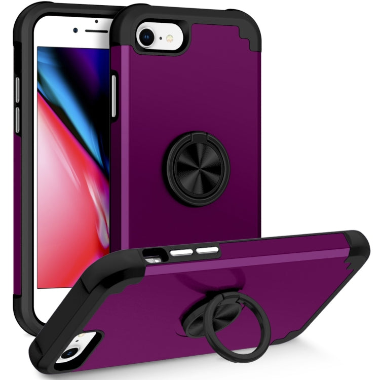 Funda Magnética para iPhone SE 2022/2020/8/7 L2 con Soporte de Anillo Giratorio (Púrpura Oscuro)