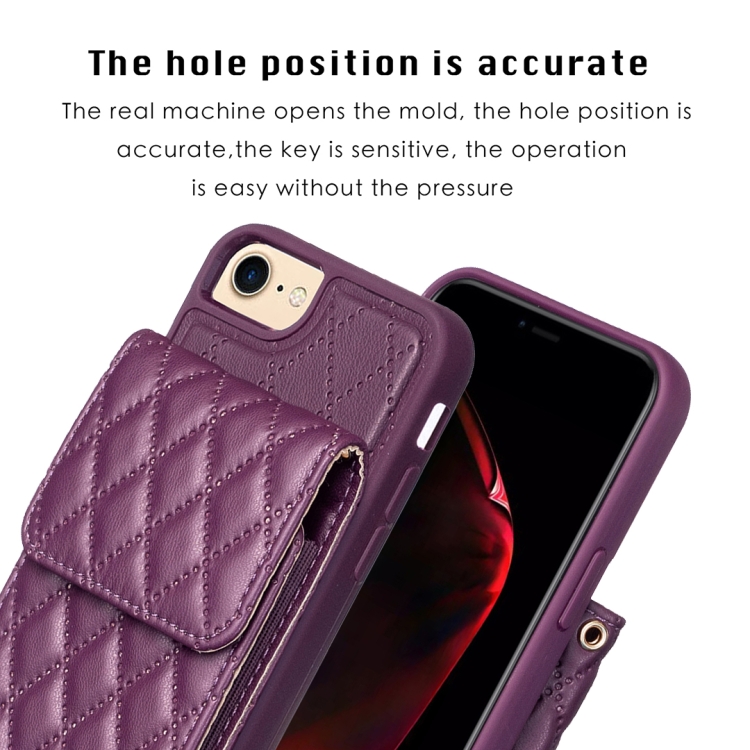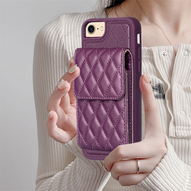 Estuche de Teléfono Cuero Rómbico con Billetera Vertical para iPhone SE 2022 SE 2020 7 8 (Púrpura Oscuro)