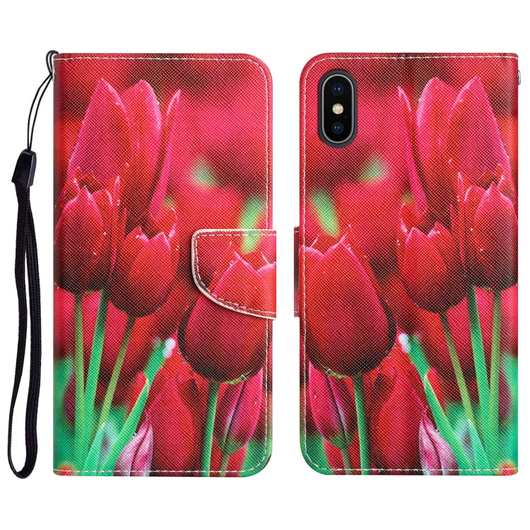 Estuche de Teléfono iPhone X Cuero Dibujo Coloreado (Tulipanes)
