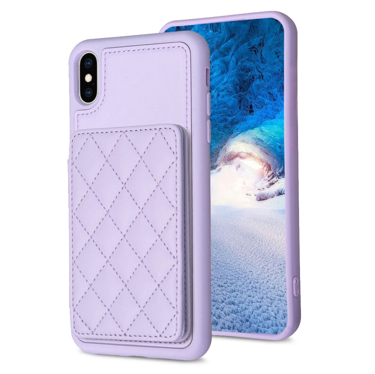 Funda para iPhone X Xs Bf25 Square Plaid Card Bag Holder Phone Case (Púrpura)