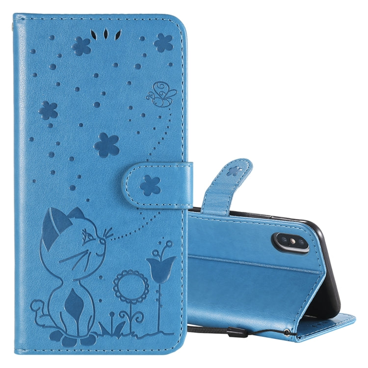 Funda de Cuero Cat Bee para iPhone X Xs con Tapa Horizontal, Soporte y Ranuras para Tarjetas (Azul)