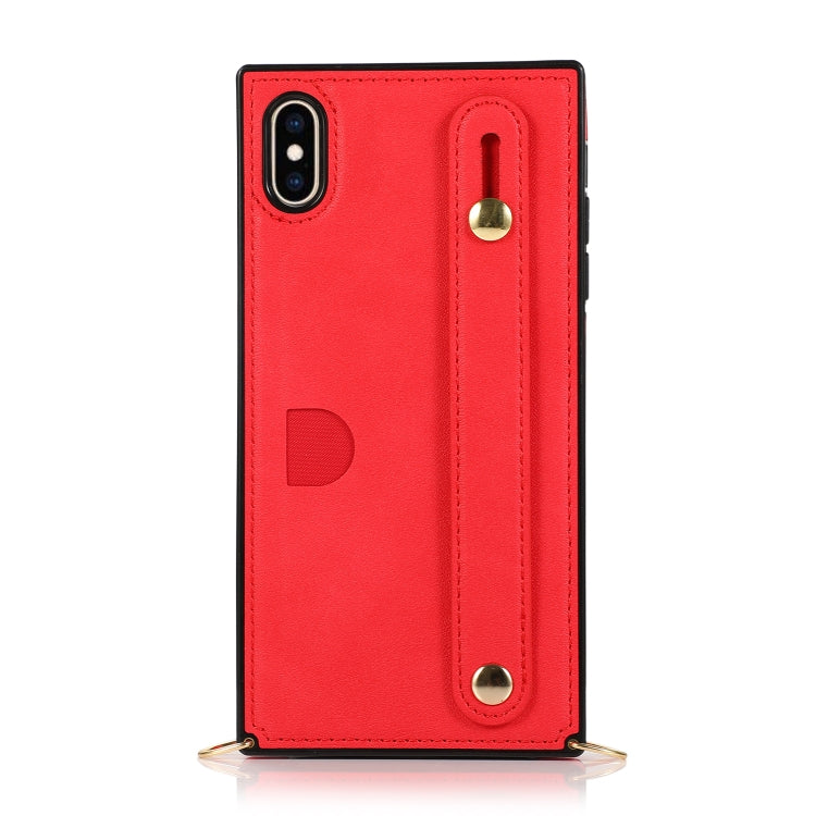 Correa para Muñeca Pu + TPU Estuche Protector para iPhone X Xs a Prueba de Golpes con Cordón Cruzado Soporte y Ranura para Tarjeta (Rojo)