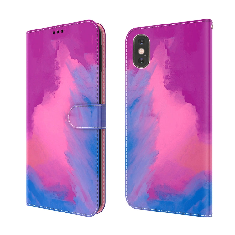 Estuche de Cuero para iPhone X Xs con Tapa Horizontal Patrón Acuarela Soporte Ranura Tarjeta Billetera (Rojo Púrpura)
