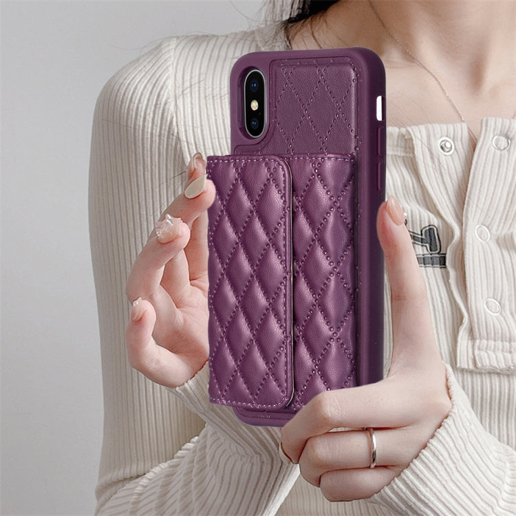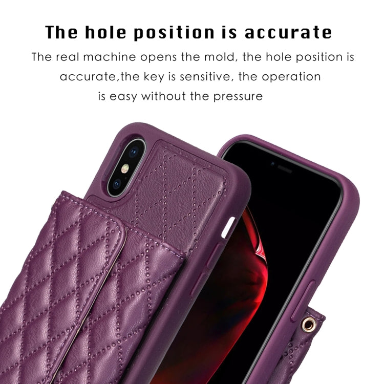 Estuche de Teléfono iPhone X Xs Cuero Rómbico con Billetera Horizontal (Púrpura Oscuro)