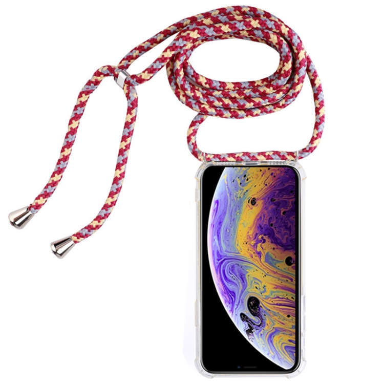 Estuche para Teléfono Móvil TPU iPhone X Xs Anticaída Cuatro Esquinas con Cordón (Rojo Albaricoque Negro)