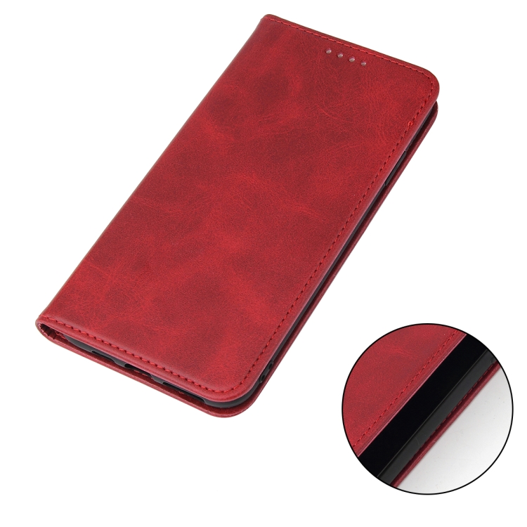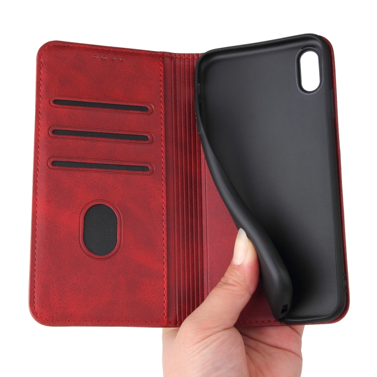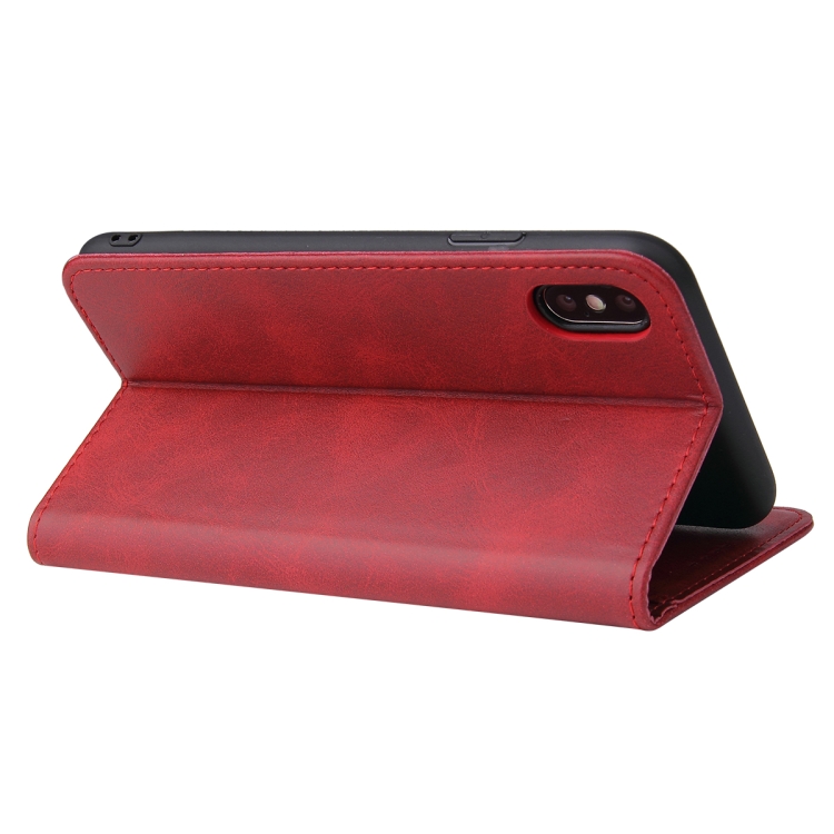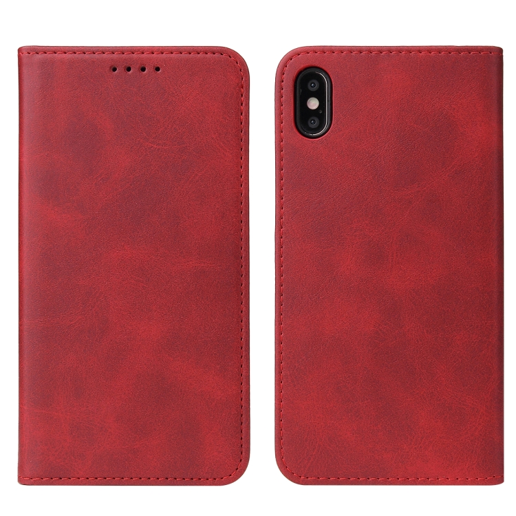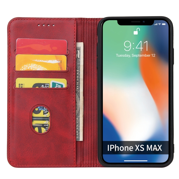 Funda para iPhone X Xs de Cuero con Tapa Horizontal Magnética Soporte Ranuras y Billetera (Rojo)