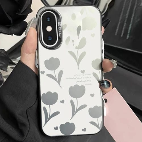 Funda híbrida para iPhone X Xs TPU con pintura plateada para PC (Tulipanes huecos negros)