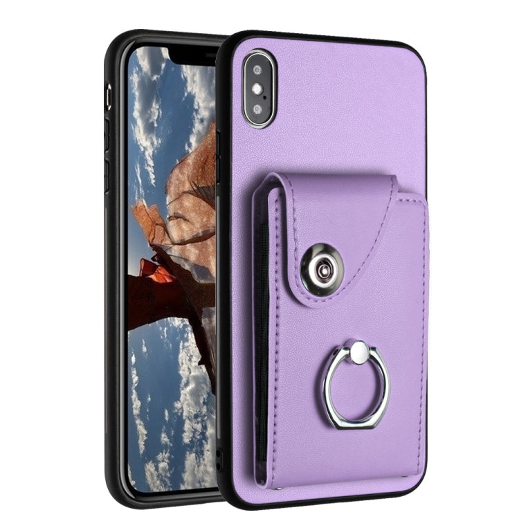 Funda para Teléfono iPhone X Xs con Soporte para Anillo y Bolsa para Tarjeta Órgano (Púrpura)