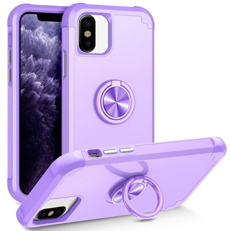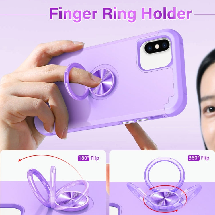 Funda Magnética para Teléfono iPhone X Xs L2 con Soporte de Anillo Giratorio (Púrpura Claro)