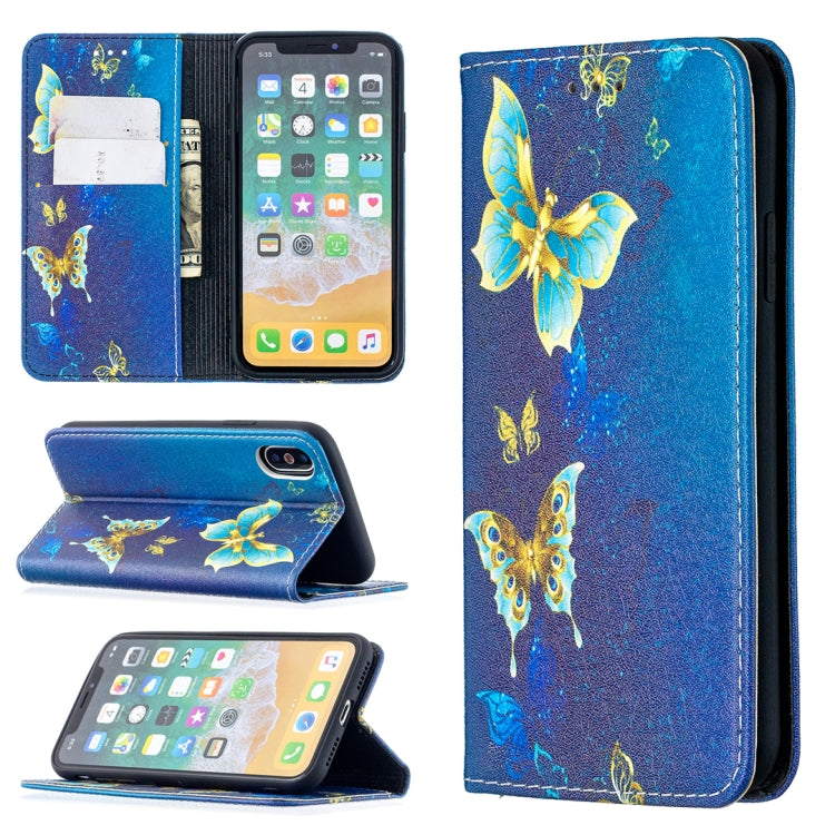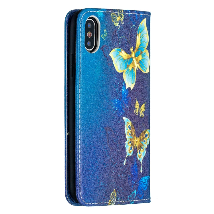 Estuche de Cuero de Pu para iPhone X / Xs con Tapa Horizontal Magnética Soporte y Ranuras para Tarjetas (Mariposas Doradas)