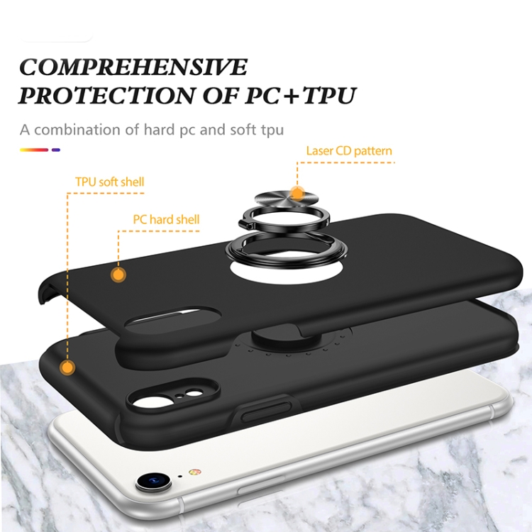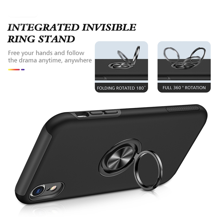 Caja para iPhone Xr Anillo Magnético Kickstand a Prueba de Golpes (Negro)