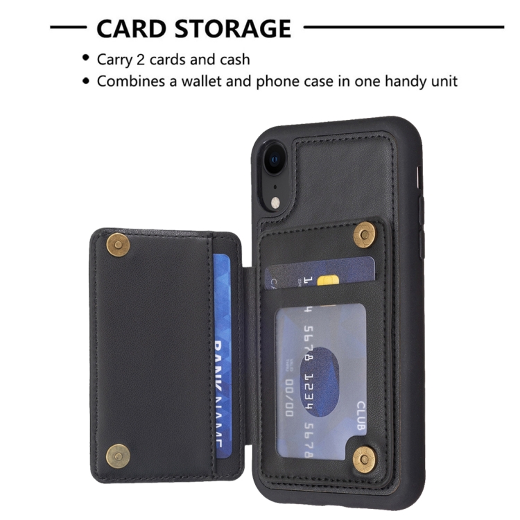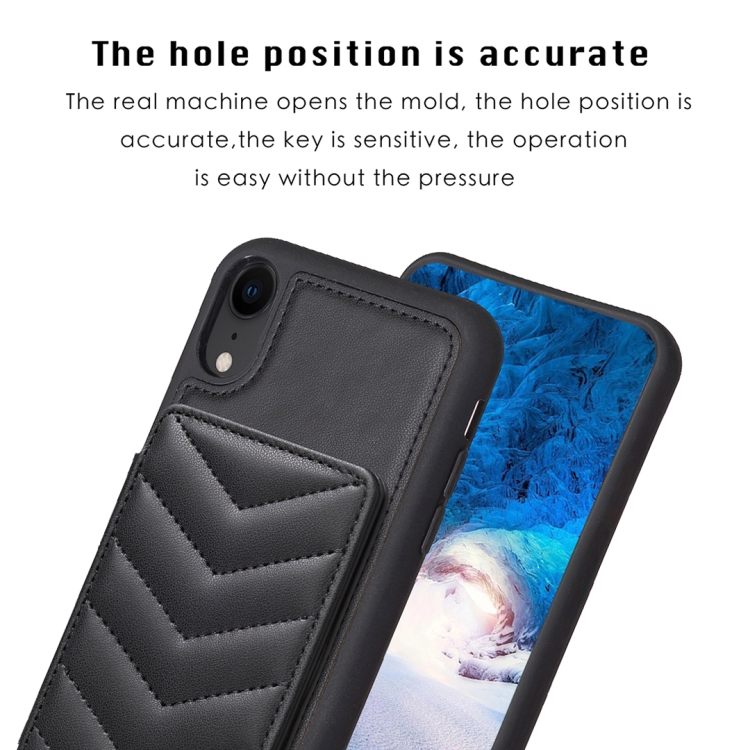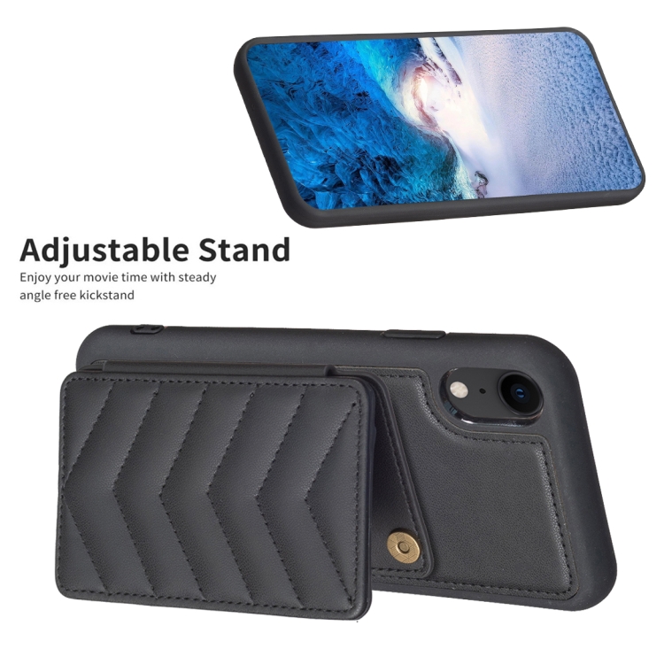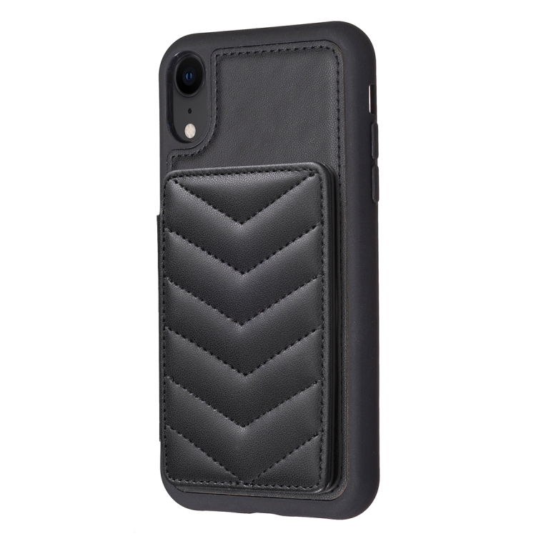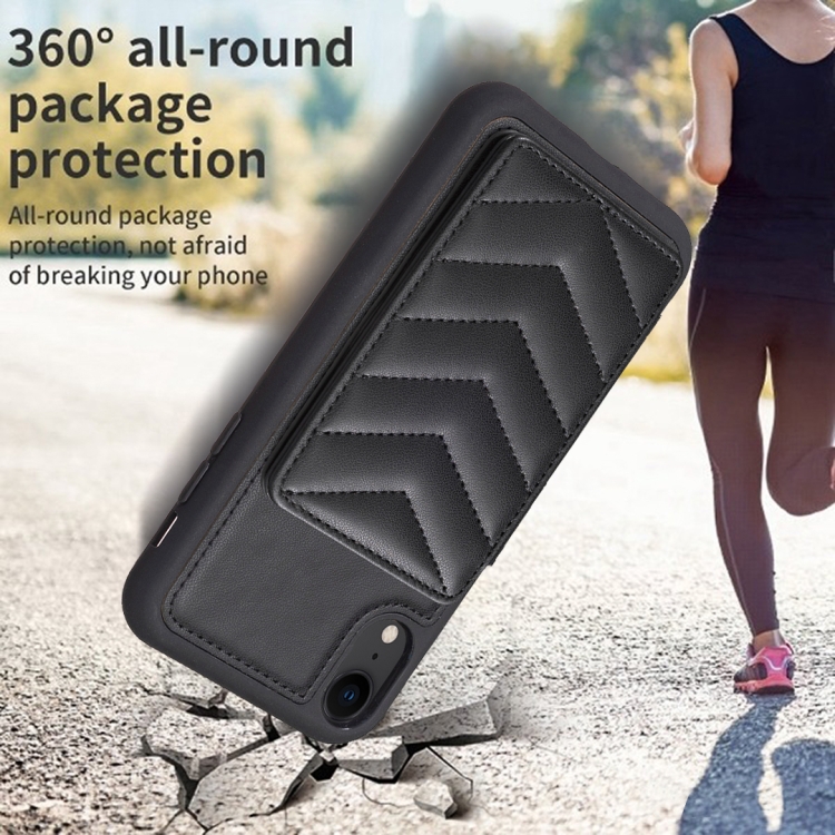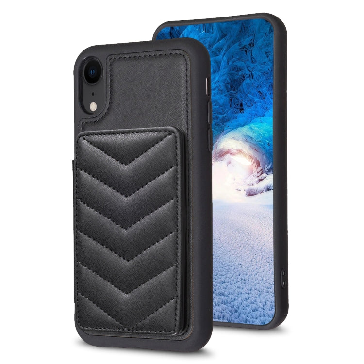 Funda para iPhone Xr Bf26 Wave Pattern Card Bag Holder Phone Case (Negro)