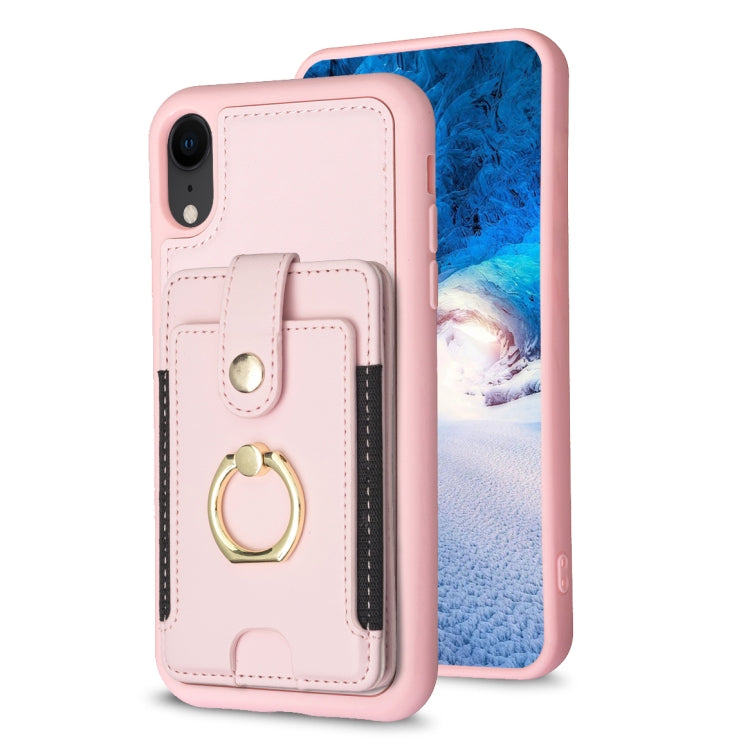 Funda para Teléfono iPhone Xr Bf27 con Soporte para Tarjeta y Anillo de Metal (Rosa)