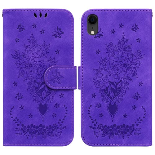 Estuche para Teléfono iPhone Xr Butterfly Rose Cuero En Relieve (Púrpura)