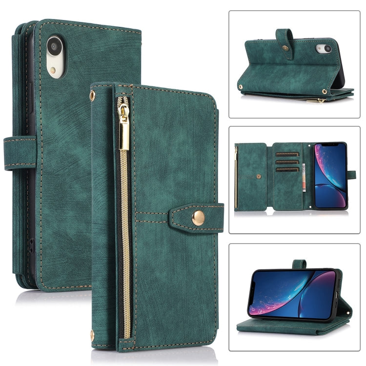 Funda para Teléfono iPhone Xr Dream 9-Card Wallet Zipper Bag Cuero (Verde)