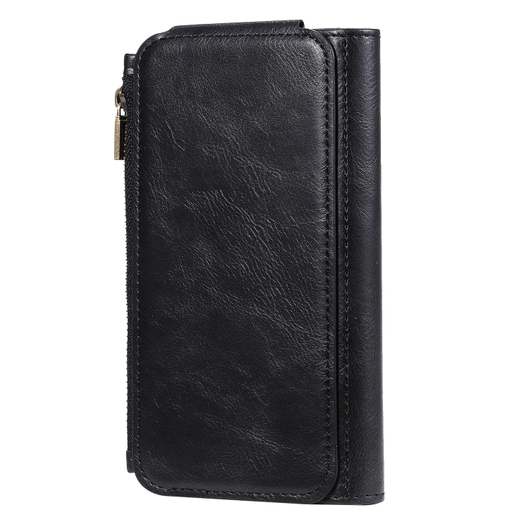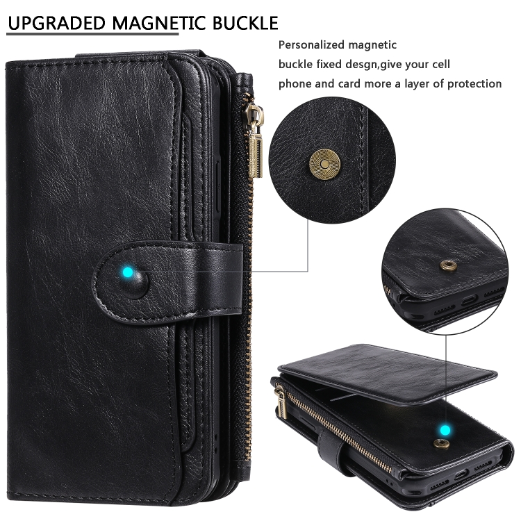 Estuche de Cuero para iPhone Xr con Tapa Horizontal Magnética Desmontable Ranuras para Tarjetas Soporte Billetera Marco de Fotos (Negro)
