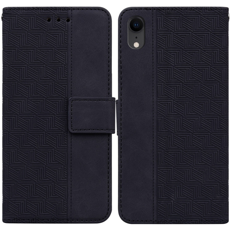 Estuche de teléfono iPhone Xr cuero en relieve geométrico (Negro)