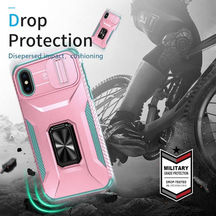 Estuche para teléfono iPhone Xr con soporte deslizante para levas (Rosa + Gris Verde)