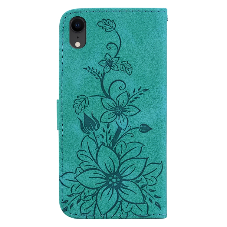 Funda para iPhone Xr de Cuero con Relieve Lily (Verde)
