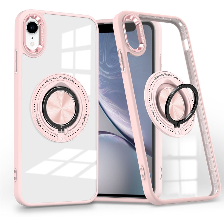 Funda para Teléfono iPhone Xr con Soporte de Anillo Giratorio Magnético (Rosa)