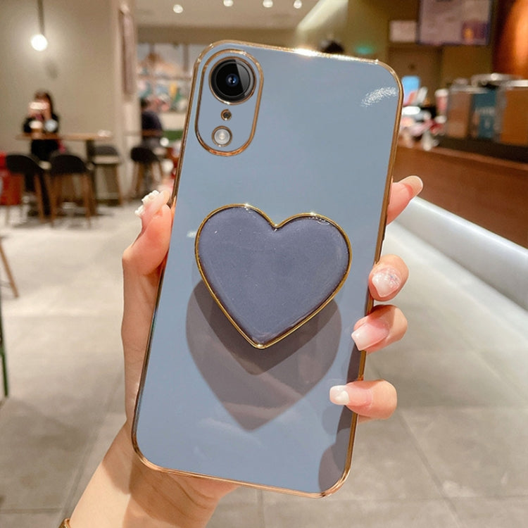 Funda para Teléfono TPU Apple iPhone Xr Galvanoplastia Love Heart Holder (Azul)