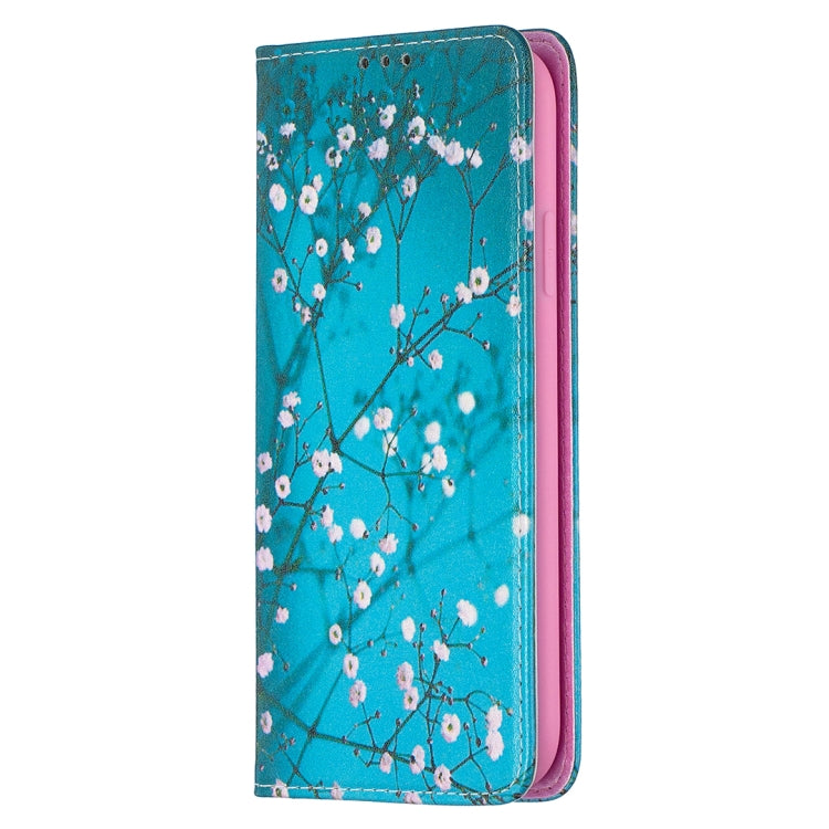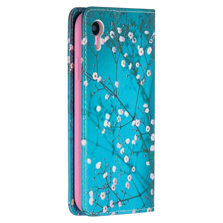 Estuche de Cuero de Pu para iPhone Xr Patrón Dibujo a Color Tapa Horizontal Magnética Invisible Soporte Ranuras Tarjetas Billetera (Flor del Ciruelo)