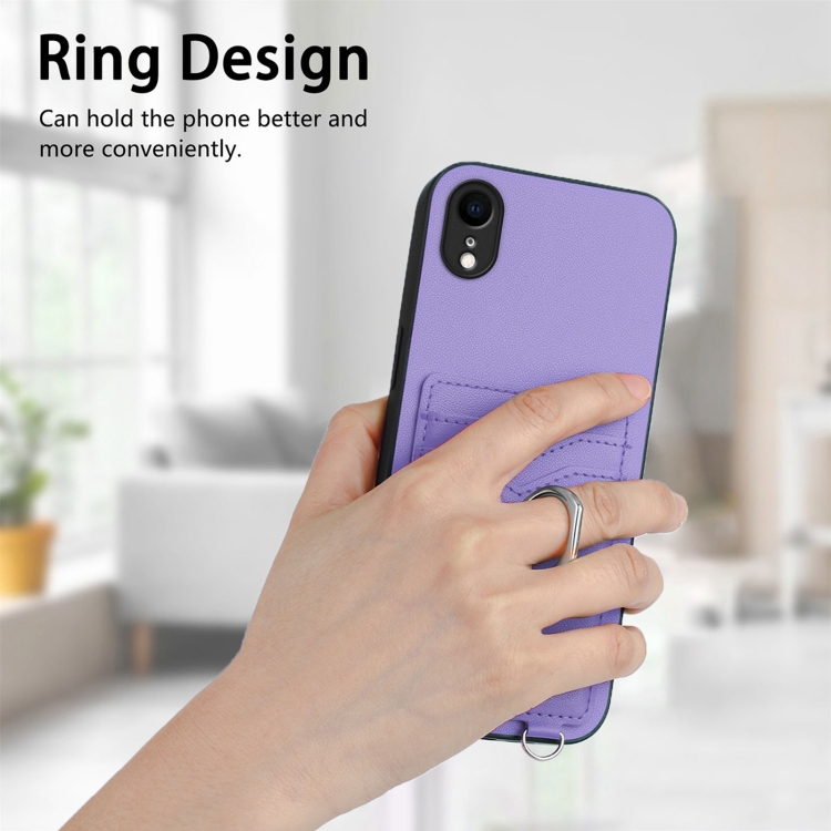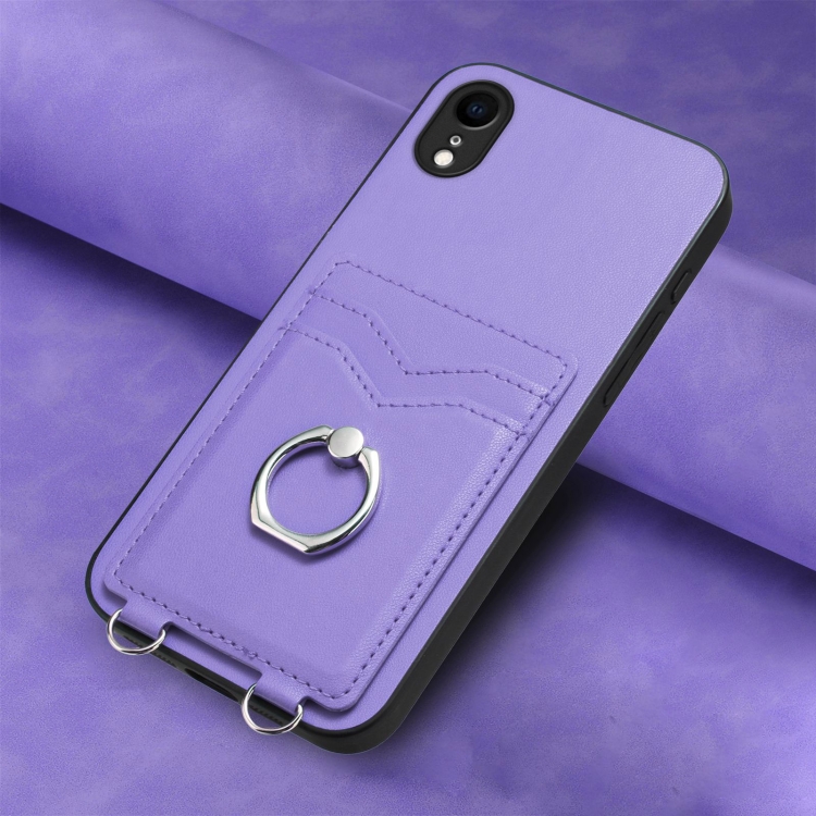 Estuche para Teléfono iPhone Xr R20 con Soporte para Tarjeta con Anillo (Púrpura)