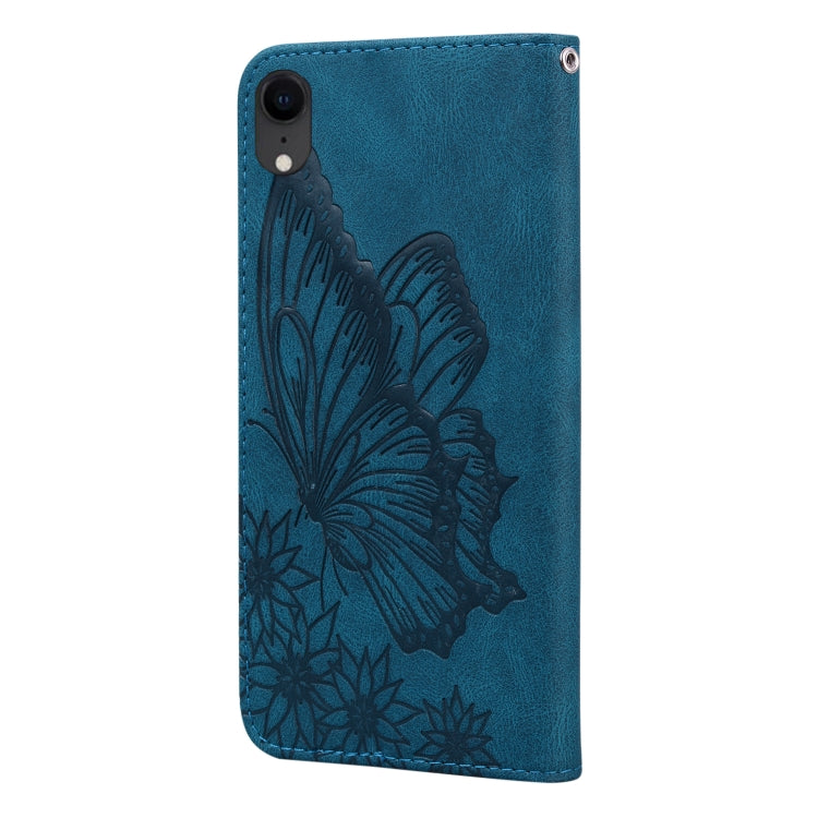 Estuche para iPhone Xr Retro Skin Feel Butterflies Cuero con Tapa Horizontal En Relieve Soporte Ranuras Tarjetas Billetera (Azul)
