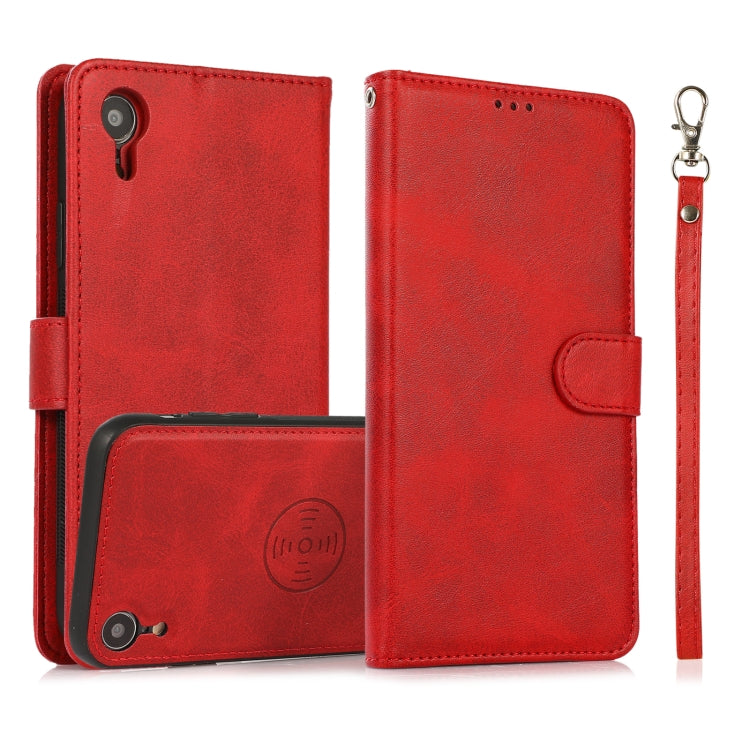 Funda para iPhone Xr Textura de Becerro 2 en 1 Cubierta Trasera Magnética Desmontable con Tapa Horizontal y Soporte (Rojo)