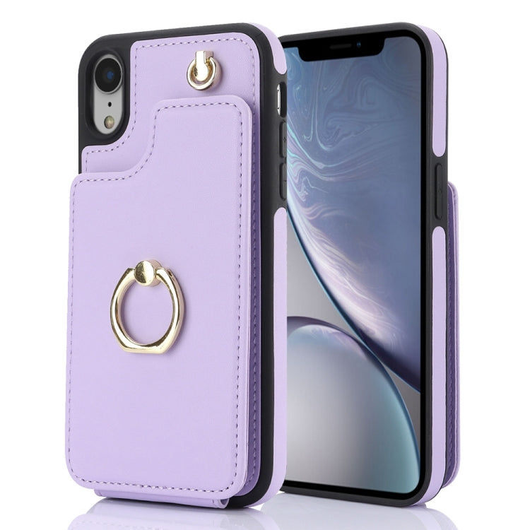 Funda para Teléfono iPhone Xr Ym005 Skin Feel Card Bag con Cordón Largo (Púrpura Claro)