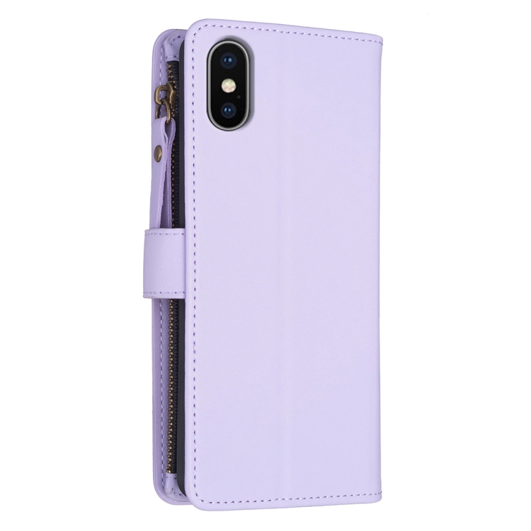 Funda Cartera para iPhone Xs Max 9 Ranuras para Tarjetas Cremallera Cuero con Tapa (Morado Claro)