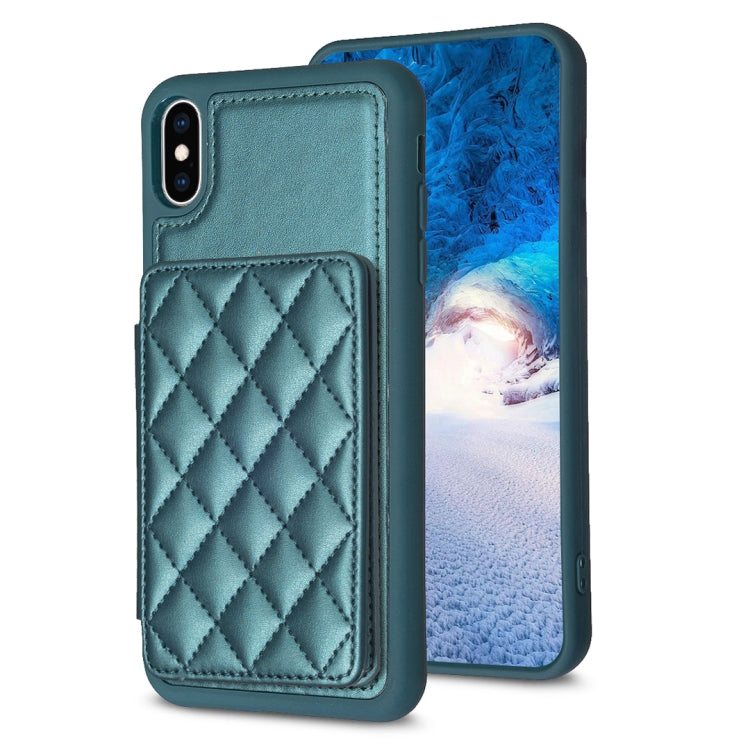 Funda para iPhone Xs Max Bf25 Square Plaid Card Bag Holder con soporte para tarjetas (Verde)