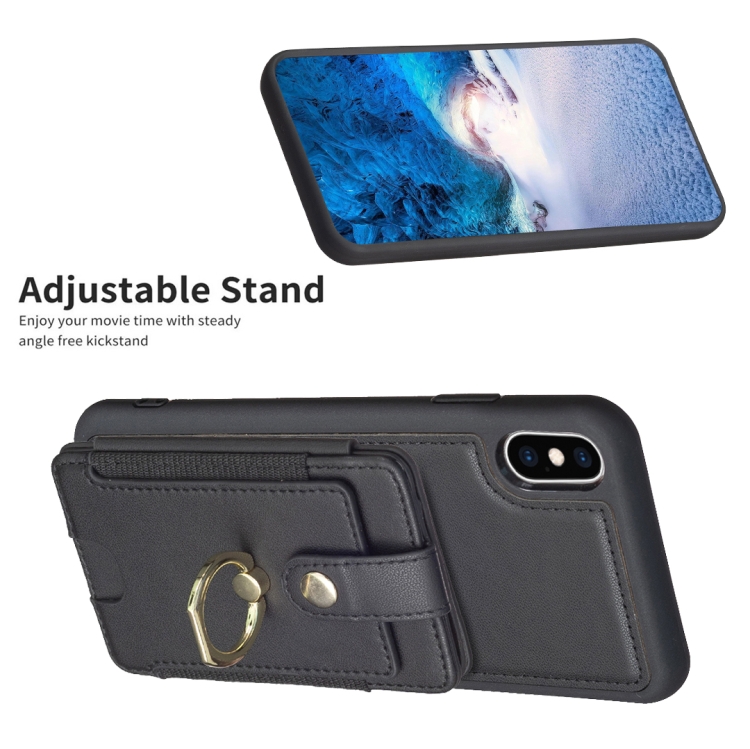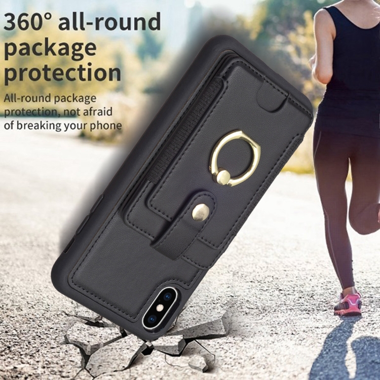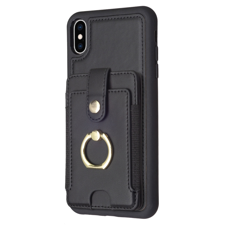 Anillo de Metal Tarjeta Bolsa Titular Caja para iPhone Xs Max Bf27 (Negro)