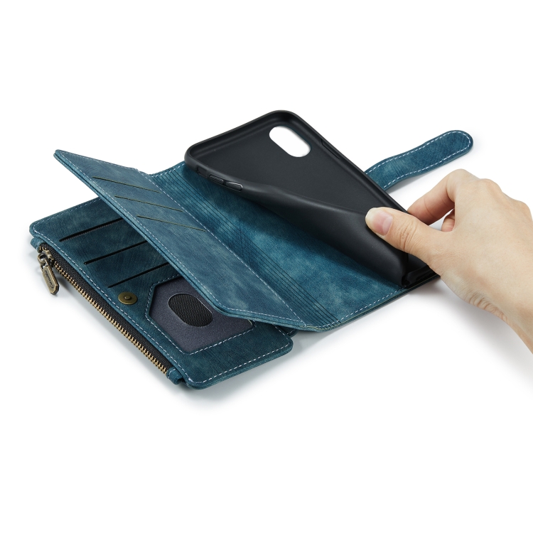 Estuche de Cuero Caseme-C30 para iPhone Xs Max con Tapa Horizontal Multifuncional, Soporte, Ranura para Tarjeta y Bolsillo con Cremallera (Azul)