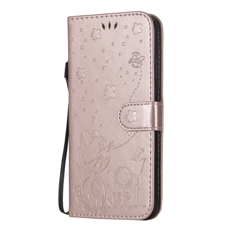 Funda de Cuero iPhone Xs Max Cat Bee Patrón En Relieve Tapa Horizontal Soporte Ranuras Tarjetas Billetera (Oro Rosa)
