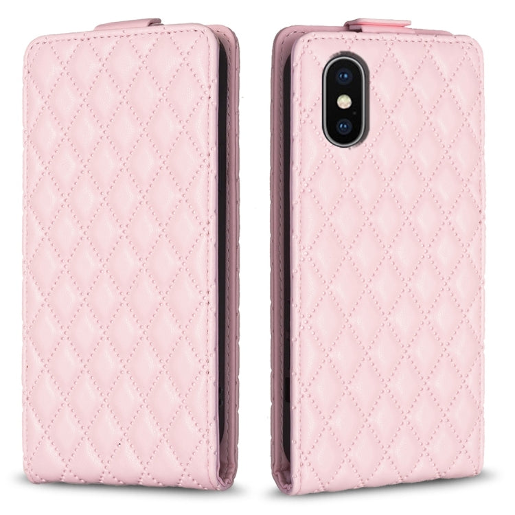 Funda para iPhone Xs Max Diamond Lattice de Cuero con Tapa Vertical (Rosa)
