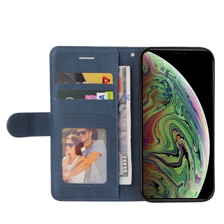 Estuche de Cuero de Pu para iPhone Xs Max con Tapa Horizontal, Soporte, Ranuras para Tarjetas y Billetera (Azul)