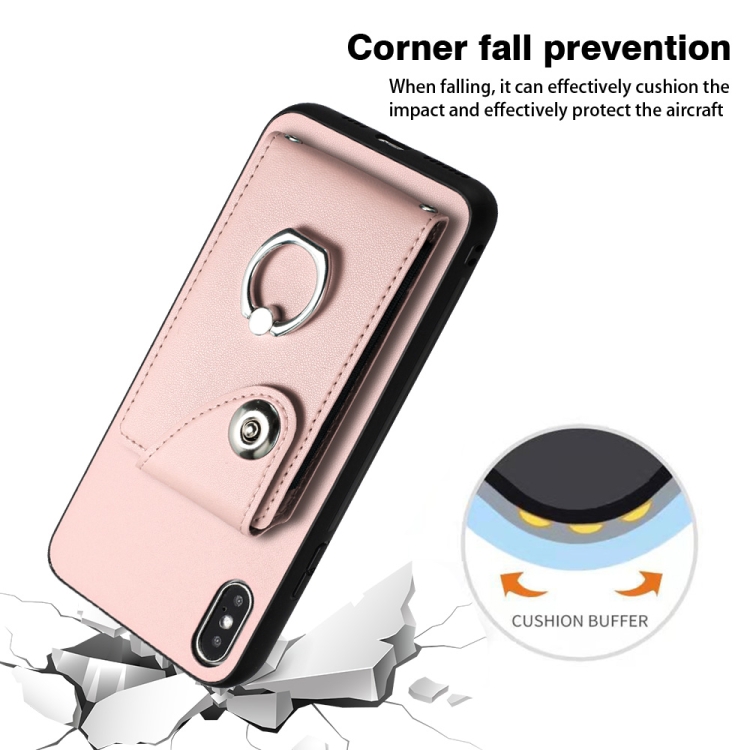 Funda para Teléfono iPhone Xs Max con Soporte para Anillo y Bolsa para Tarjeta (Rosa)