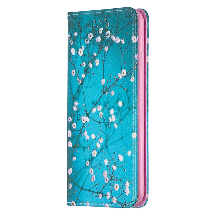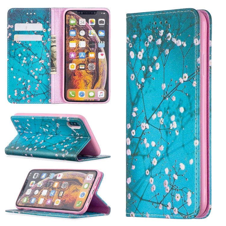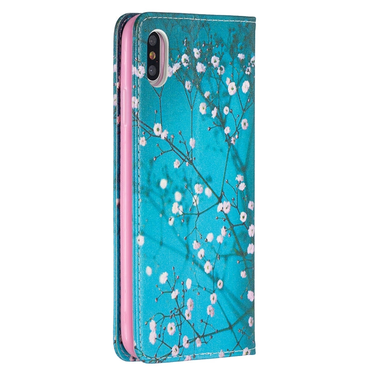 Estuche de Cuero PU para iPhone Xs Max con Tapa Horizontal Magnética Invisible Soporte Ranuras para Tarjetas y Billetera (Flor del Ciruelo)