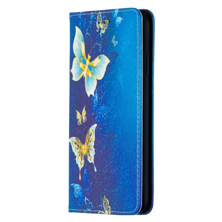Estuche de Cuero PU para iPhone Xs Max Patrón Dibujo con Tapa Magnética Soporte Ranuras y Billetera (Mariposas Doradas)