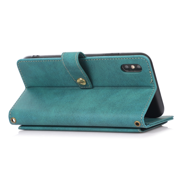 Funda para iPhone Xs Max PU + TPU Cuero con Tapa Horizontal, Soporte, Ranura para Tarjeta y Billetera (Azul Lago)